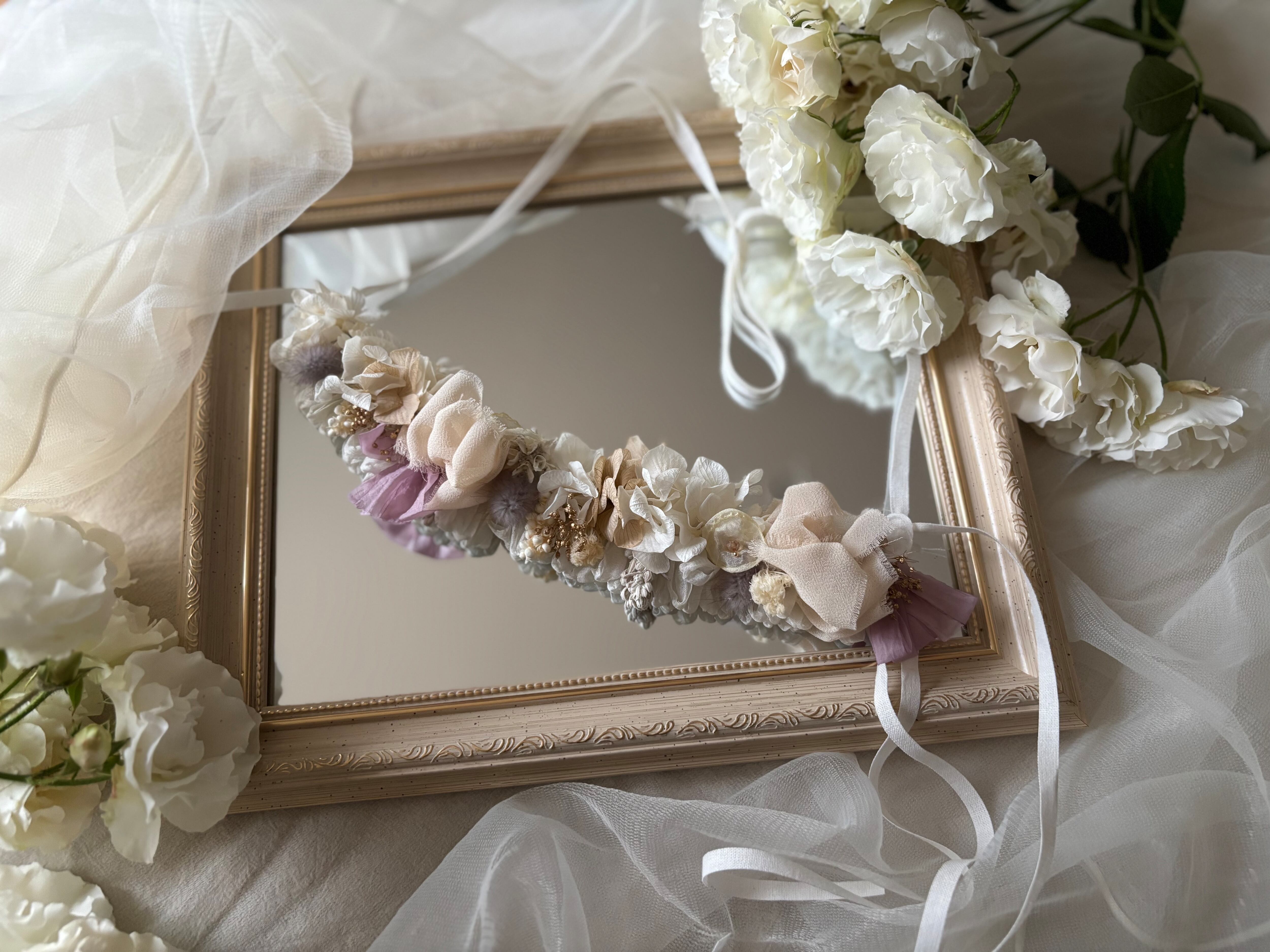 シフォンリボンとお花のリース 花冠 アクセサリー