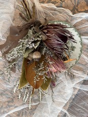ボリュームのあるネイティブフラワーのプロテアをメインにした、存在感あるスワッグです。