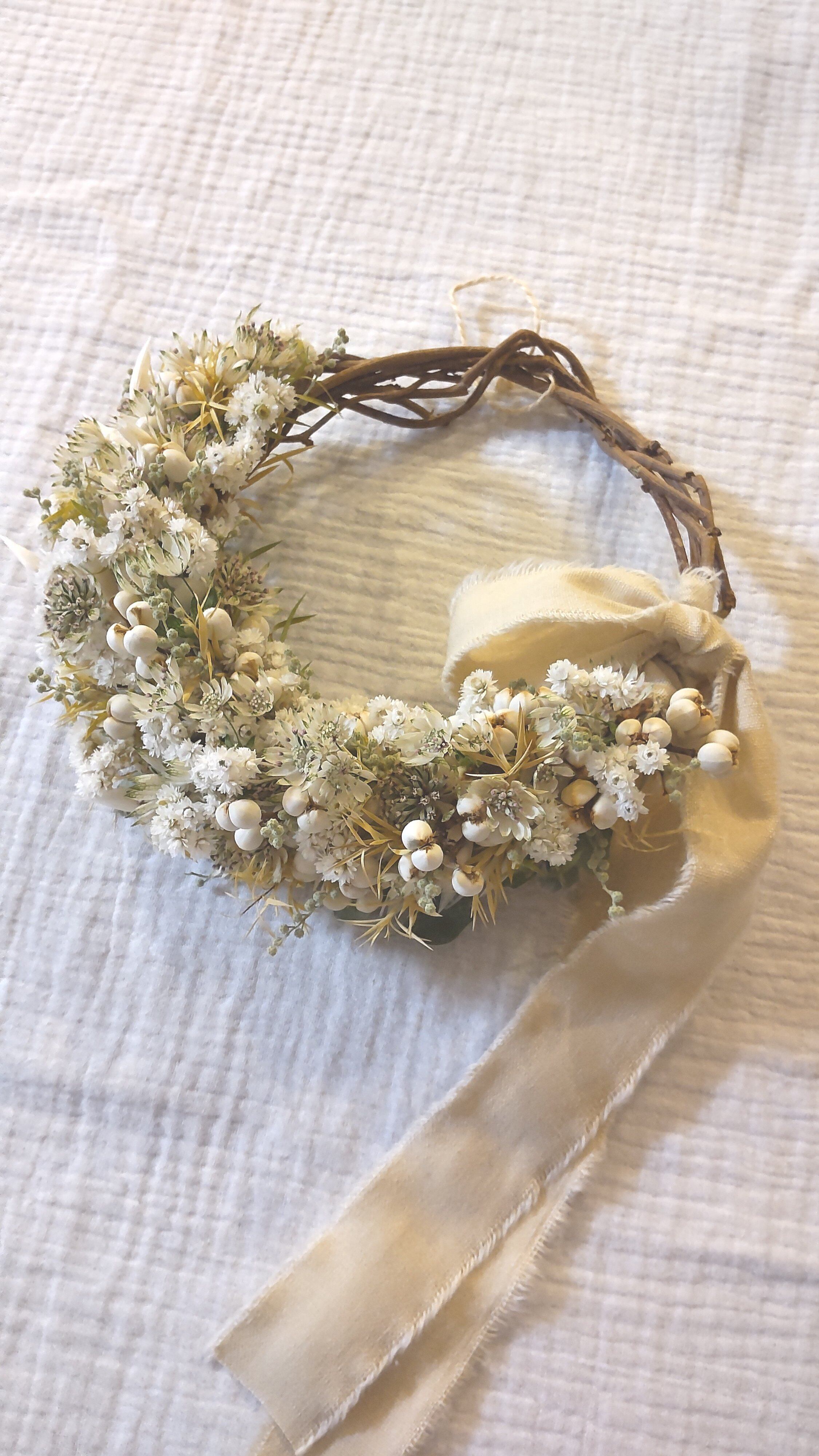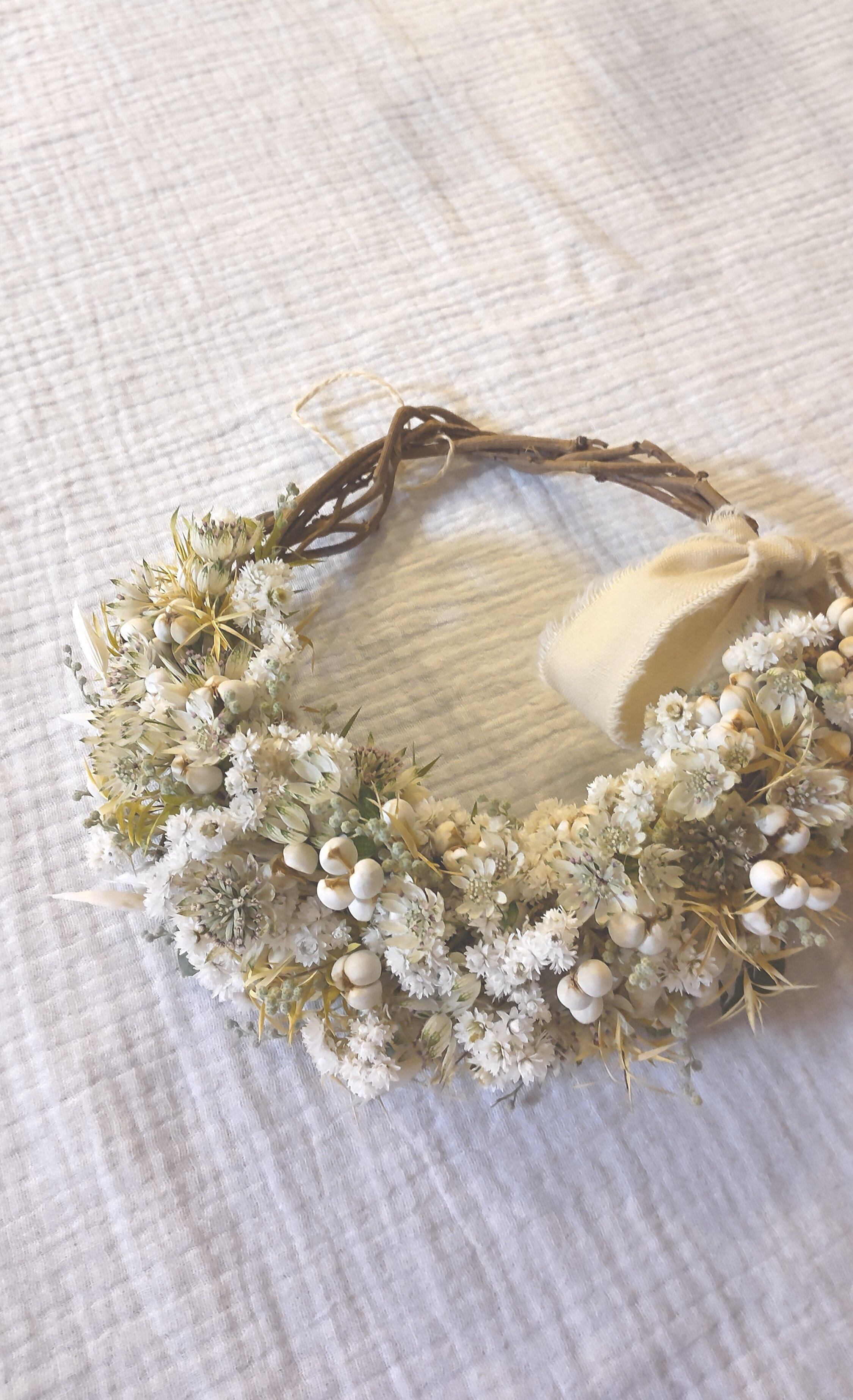 ホワイト クリーム ライトグリーンでかわいい雰囲気のナチュラルリースにしました。*