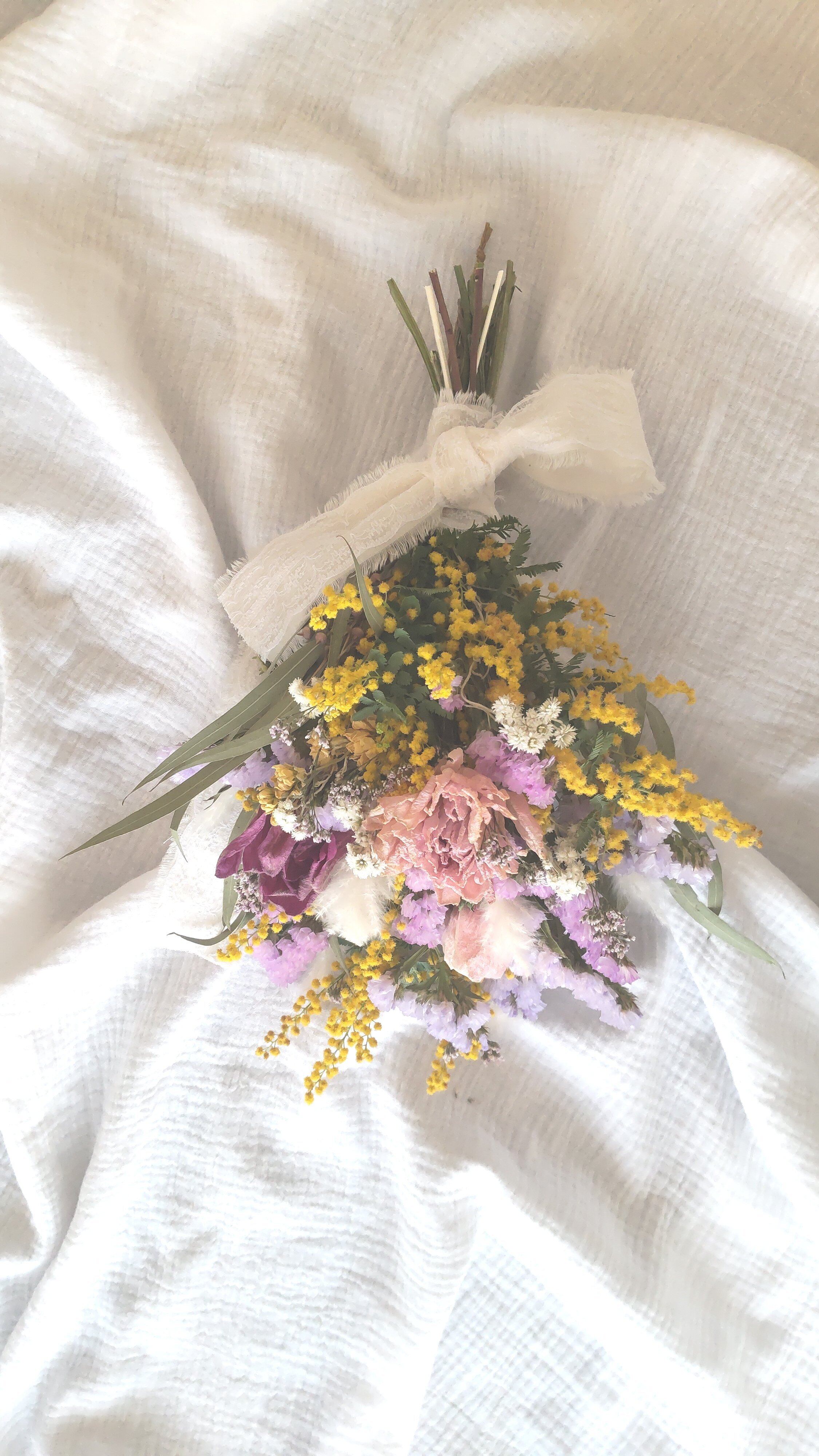 ミモザはフレッシュでドライフラワーのラナンキュラスやアネモネも入れて(*˘︶˘*).。*