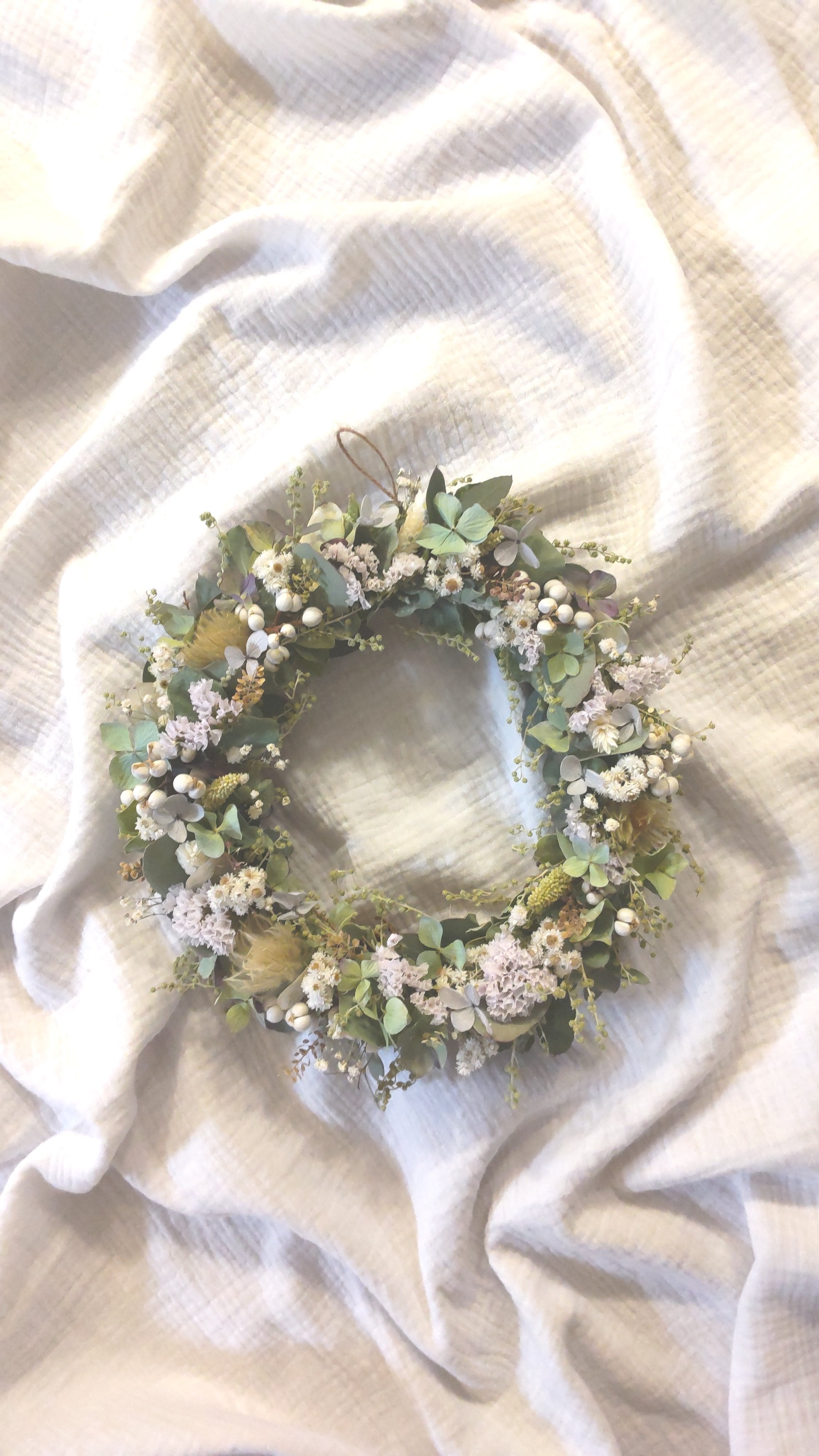 ナチュラルな雰囲気の草花リースにしました(人*´∀`)。*゚+