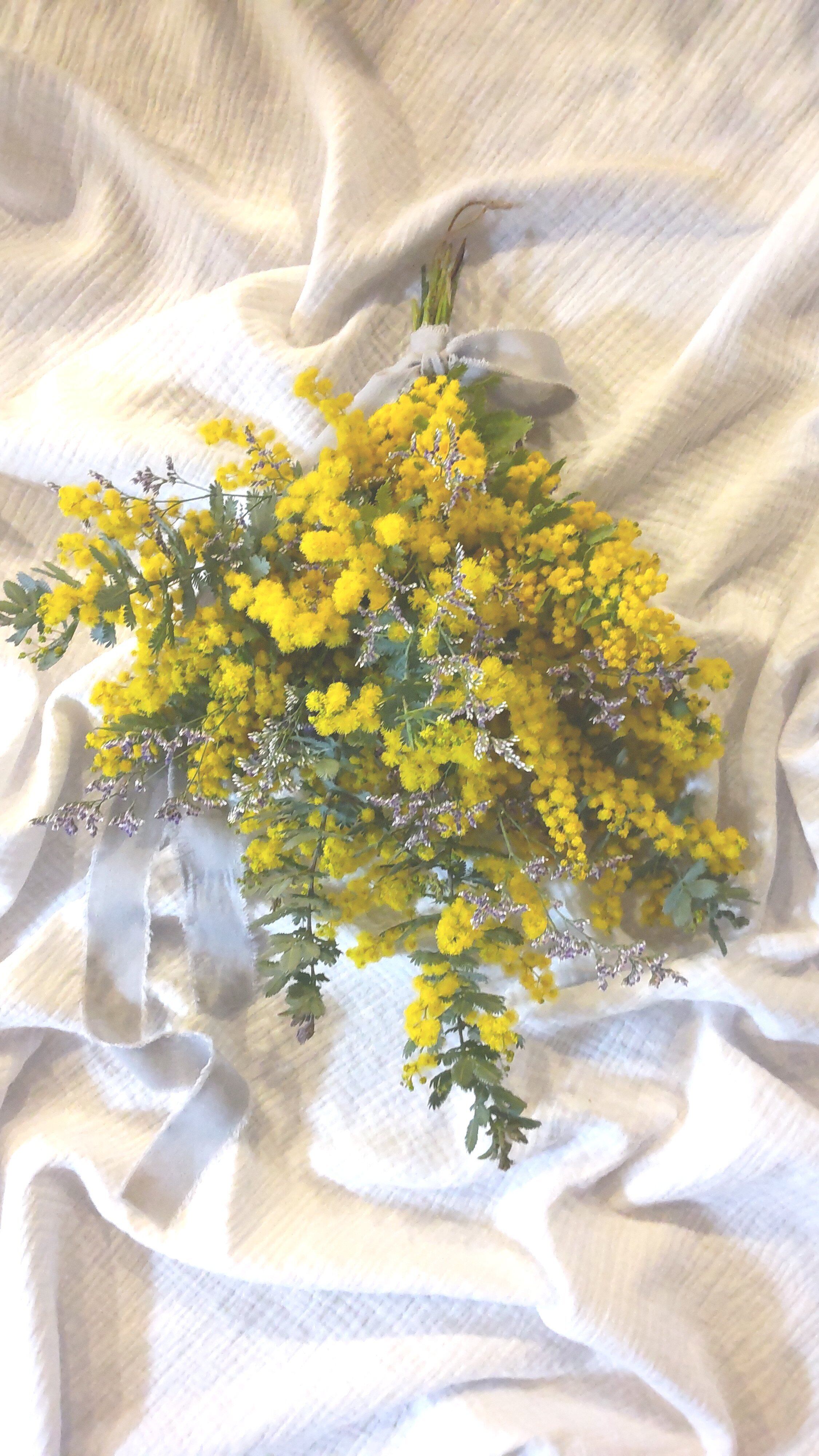 ミモザとブルーファンタジアのスワッグです‥フレッシュからドライになります( ◜‿◝ )