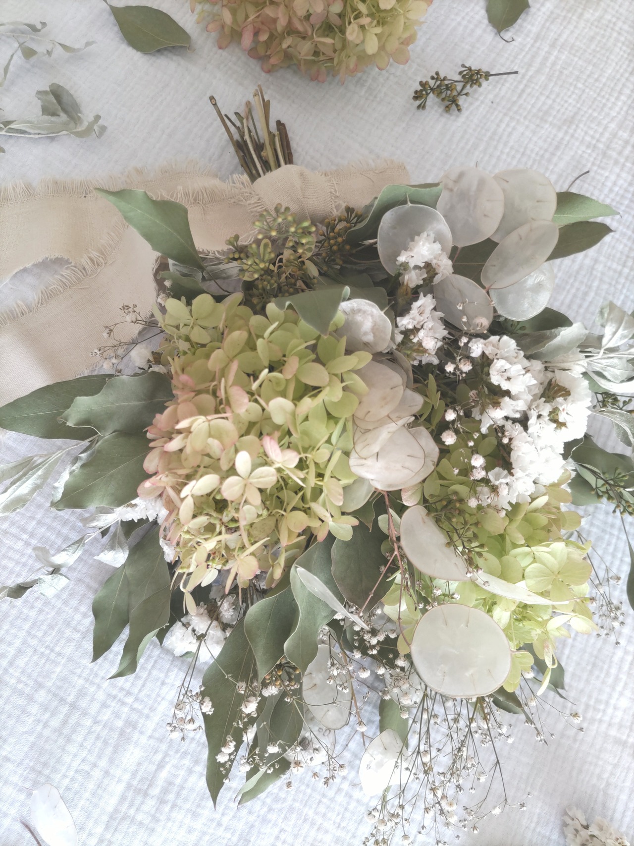 ライムグリーンにホワイトとグリーンを合わせて、爽やかなブーケにもオススメのスワッグにしました。