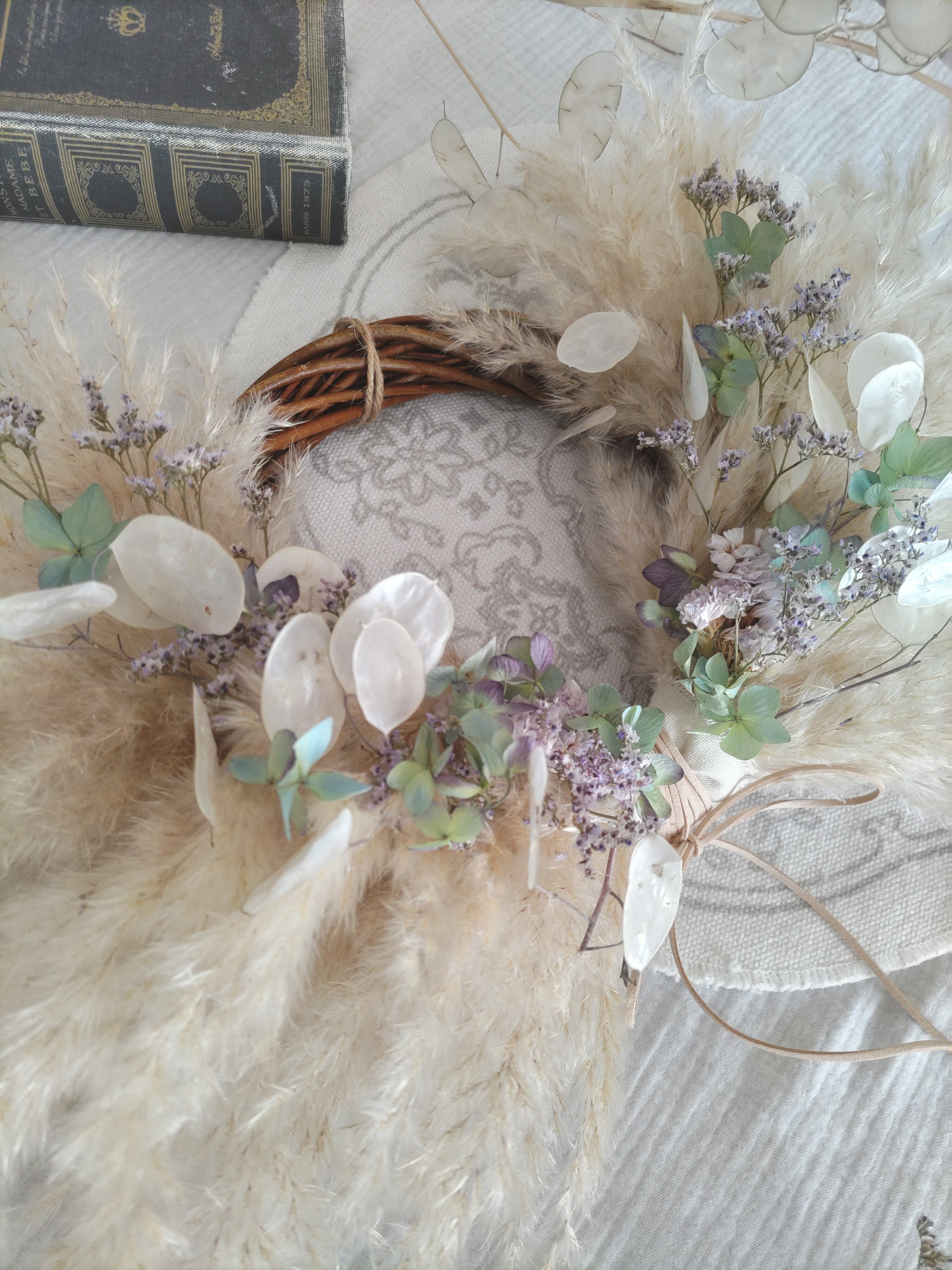 パンパスグラスと秋色紫陽花ナチュラルドライフラワーリース