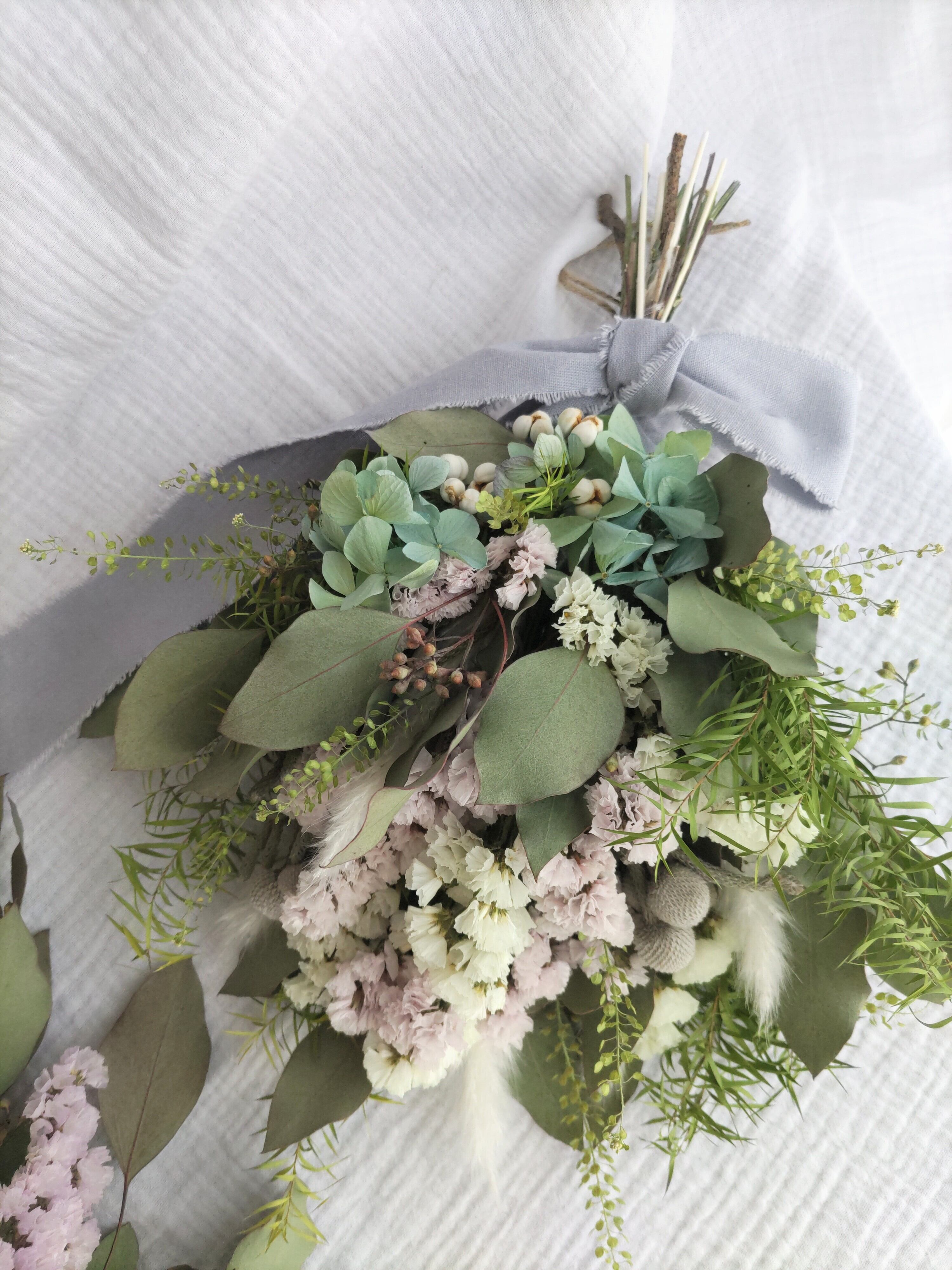 紫陽花とグリーンのナチュラルドライフラワースワッグ