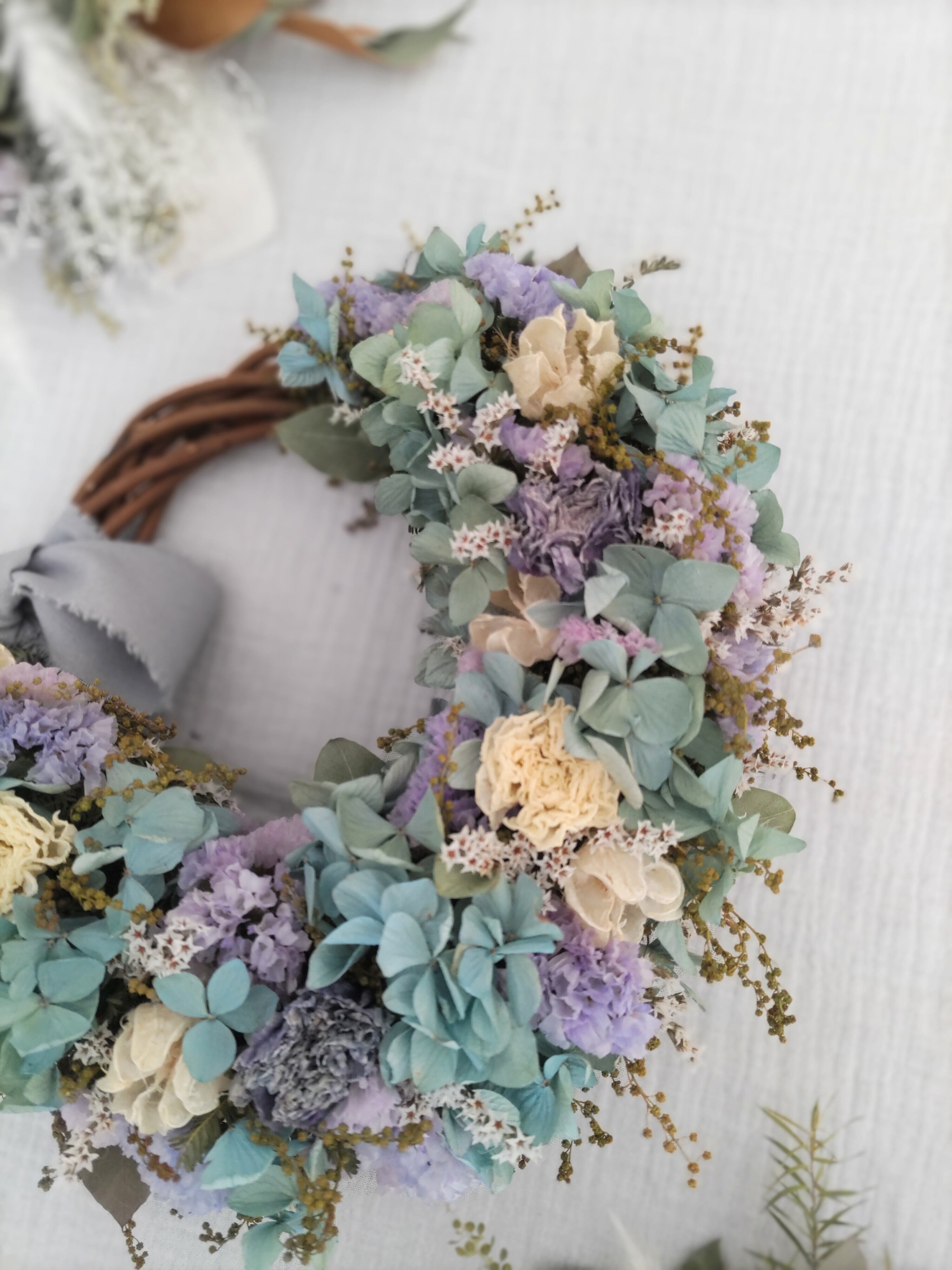 ご注文品 ブルーのドライフラワーリース