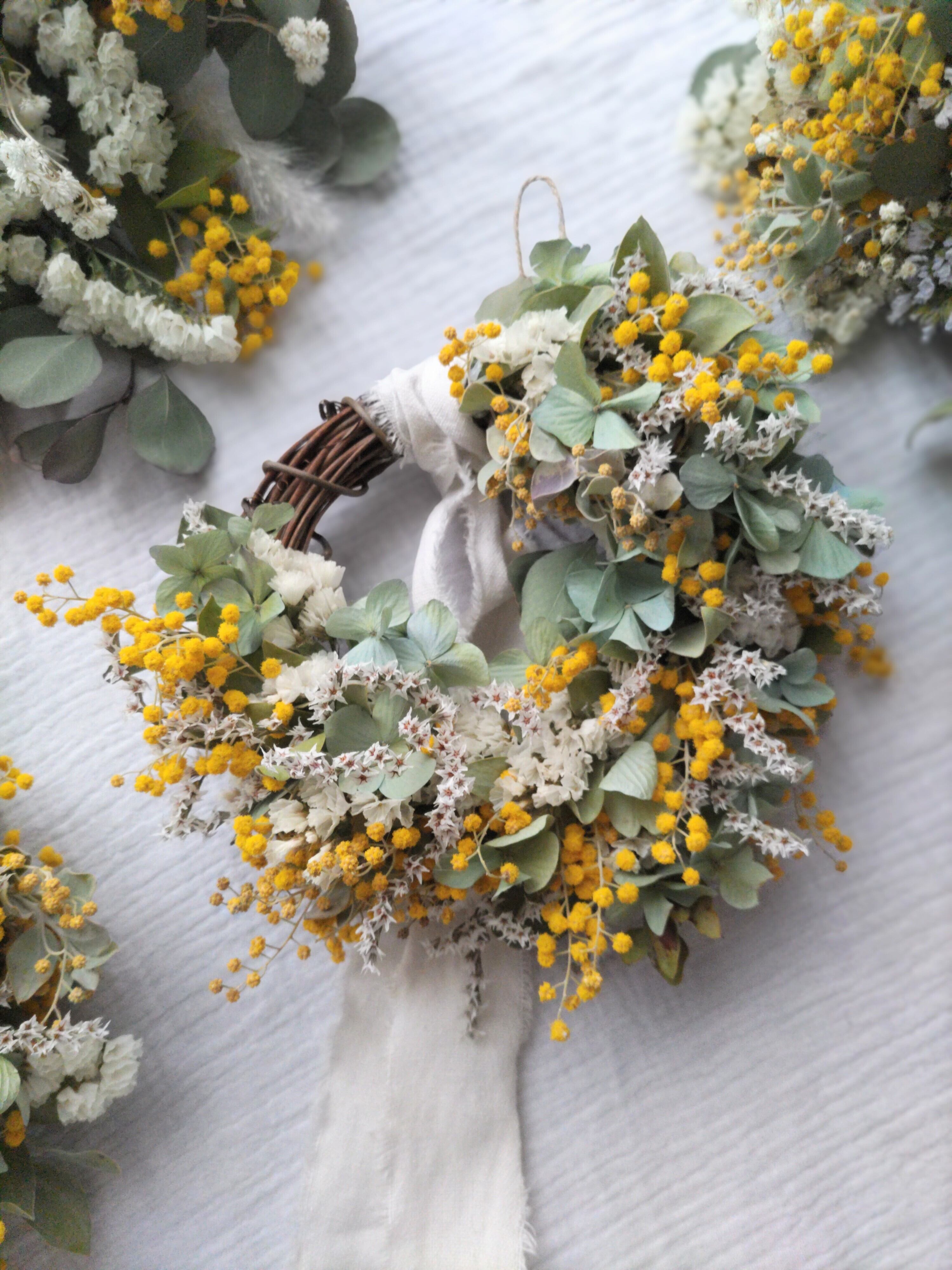 ミモザと紫陽花のナチュラルドライフラワーリース