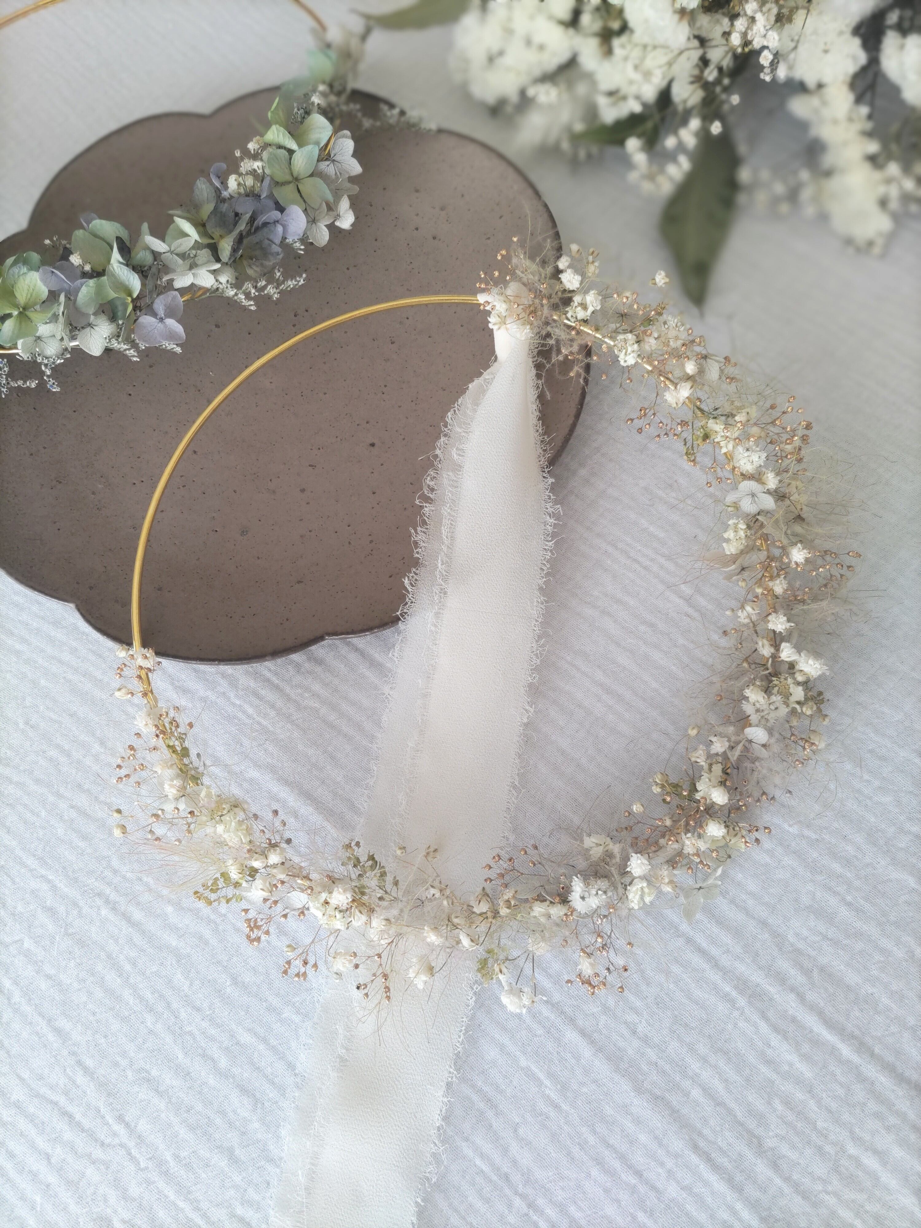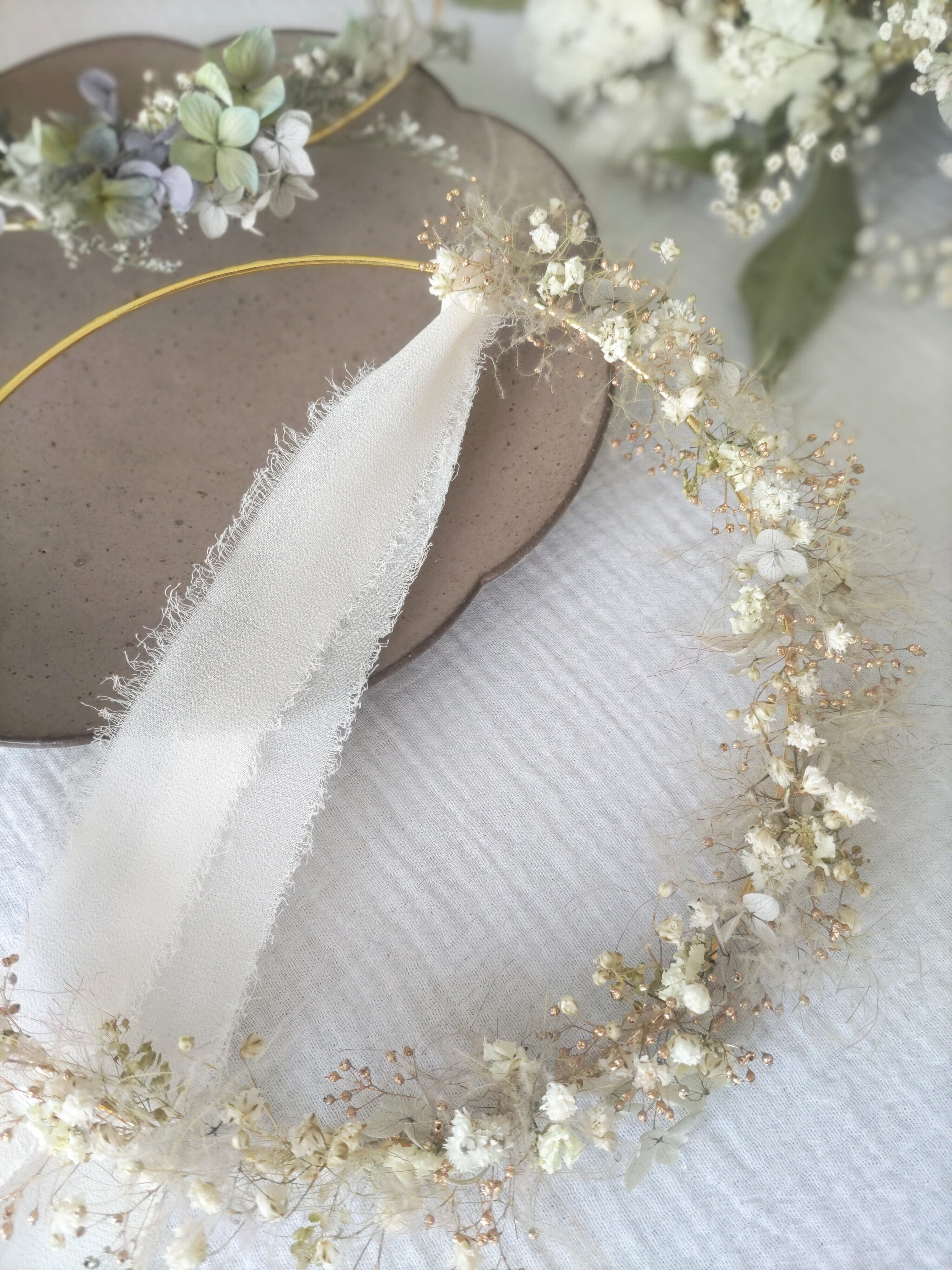 こちらのfuwari-ふわり-はかなり繊細なリースです、細いリングに直接お花をつけています。