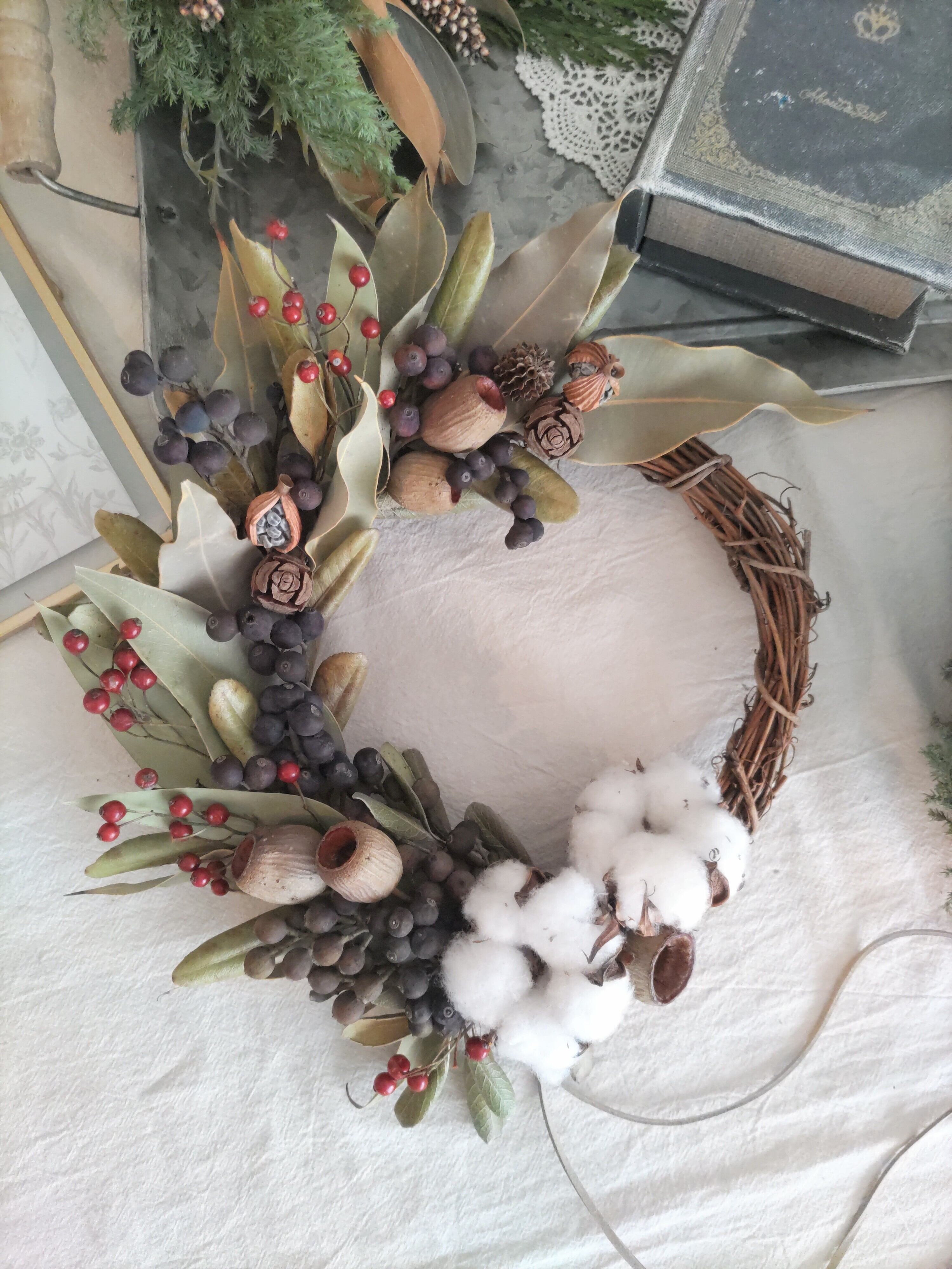 シャリンバイやナンキンハゼ、野ばらの実を沢山使ったリースです♪