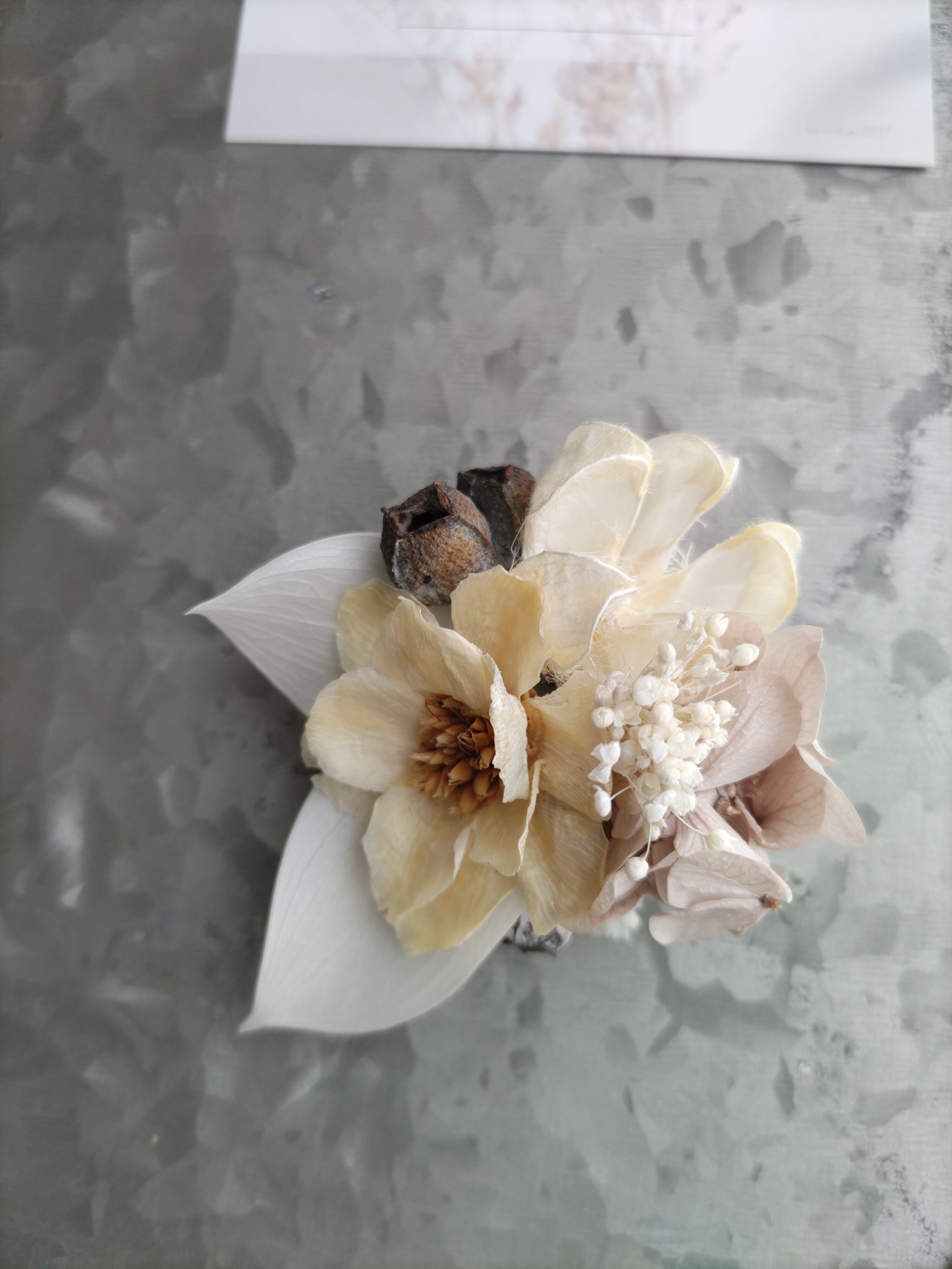 ドライフラワーとプリザーブドフラワーなど合わせたoriginalコサージュです♪