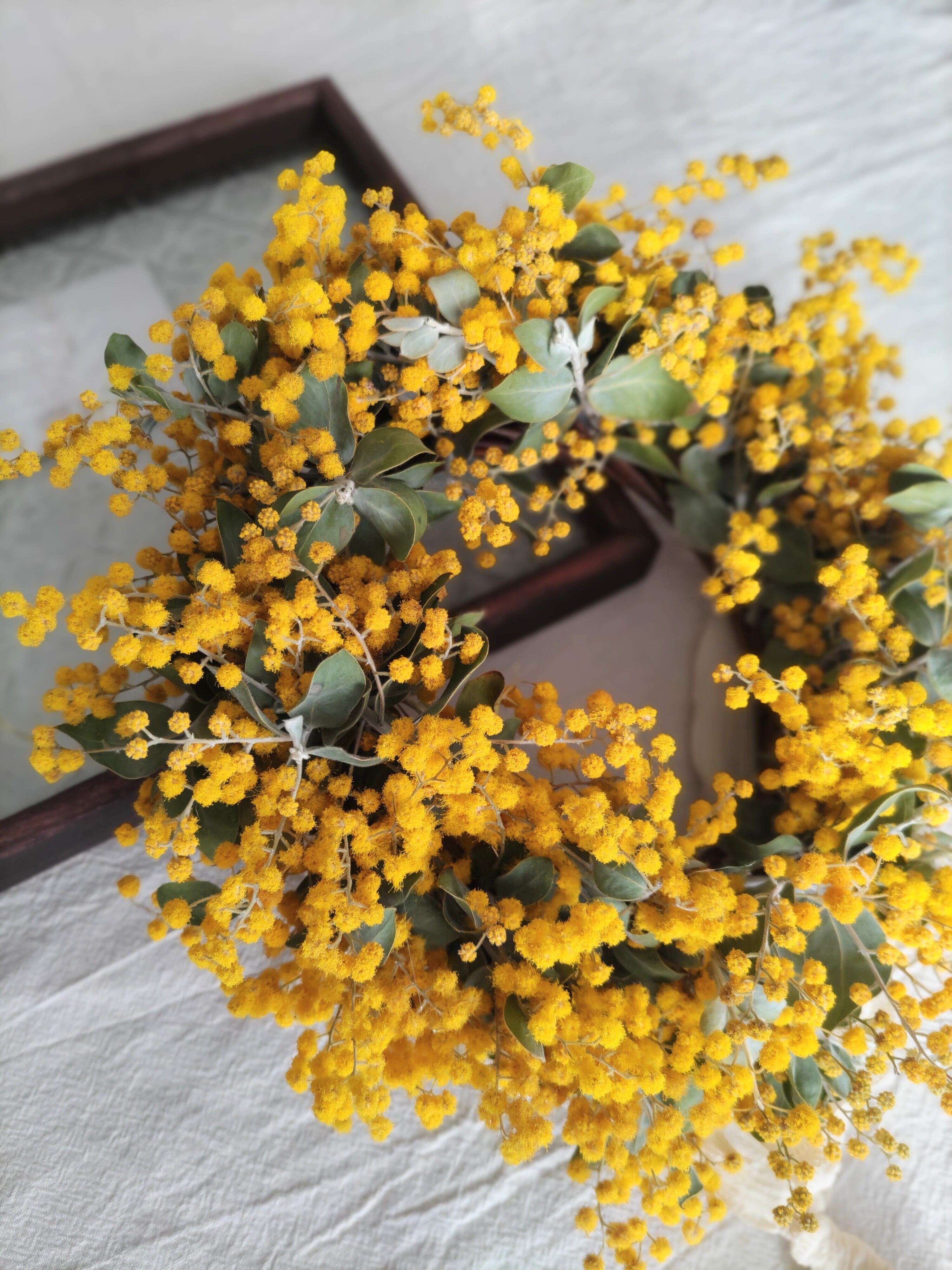 パールアカシアをたっぷり使ったふわふわ黄色いリース♪