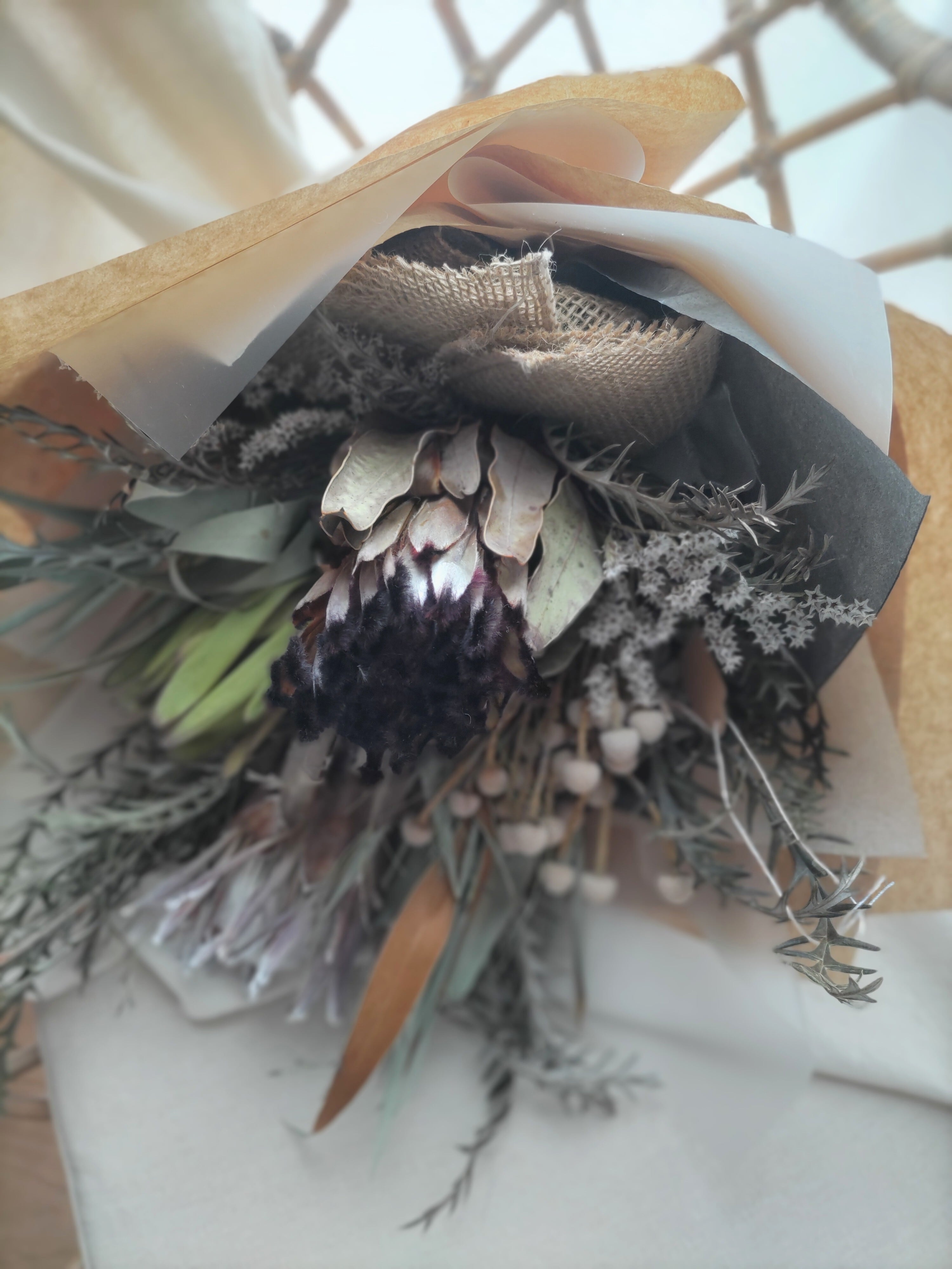 人気のネイティブフラワープロテア ニオベのドライフラワースワッグこのまま飾って頂けます♪
